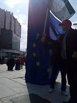 According to Eurostat, in the fall of 2018, 44% of Belgians stated that they did not trust the European Union.[75] The main Eurosceptic party in Belgium is the far-right Vlaams Belang which is active in the Dutch-speaking part of Belgium. However, the left-wing PTB-PVDA also opposes the EU on many issues, primarily austerity and social policy,[76] while defending a fundamental reform of the existing European framework instead of an exit from it.[77]