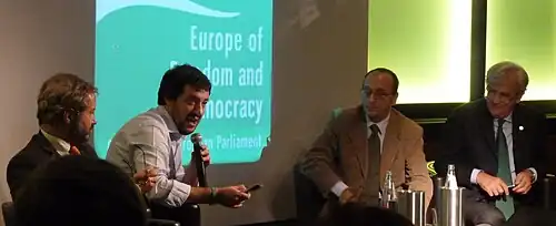 According to Taggart and Szczerbiak, hard Euroscepticism, or anti-EU-ism,[30][31][32][33][34] is "a principled opposition to the EU and European integration and therefore can be seen in parties who think that their countries should withdraw from membership, or whose policies towards the EU are tantamount to being opposed to the whole project of European integration as it is currently conceived".[33] The Europe of Freedom and Direct Democracy group in the European Parliament (2014–2019) displayed hard Euroscepticism, but following the 2019 EU elections the group was disbanded due to too few members, as its largest member, the British Brexit Party, withdrew ahead of the United Kingdom's formal exit from the EU.[36]