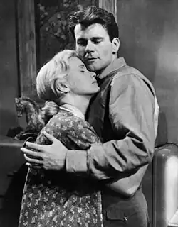 Although North by Northwest might have propelled her to the top ranks of stardom, Saint chose to limit her film work in order to spend time with her husband since 1951, director Jeffrey Hayden, and their two children. In the 1960s, Saint continued to distinguish herself in both high-profile and offbeat pictures. She co-starred with Paul Newman in Exodus (1960), a historical drama about the founding of the state of Israel adapted from the novel of the same name by Leon Uris. It was directed by Otto Preminger. She also co-starred with Warren Beatty, Karl Malden and Angela Lansbury as a tragic beauty in the drama All Fall Down (1962). Based upon a novel by James Leo Herlihy and a screenplay by William Inge, the film was directed by John Frankenheimer.[29]