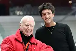 Evan Lysacek was originally coached by Candice Brown in Naperville, Illinois.[119] After that, he worked with Deborah Stoery in Naperville and Addison, Illinois, for three years. For the next two years, he had an arrangement where he would train under both Addison-based Maria Jeżak-Athey and Moscow-based Viktor Kudriavtsev. Kudriavtsev would come to Chicago for part of the year to coach, and Lysacek spent his summers at Kudriavtsev's summer training camps in Moscow, Russia and Flims, Switzerland. When that arrangement proved untenable, Kudriavtsev recommended Lysacek to Carroll, who agreed to coach Lysacek on the condition that Lysacek would work more with Congemi than with himself, due to Carroll's commitments to Timothy Goebel.[16][37] Lysacek moved to El Segundo, California, to work with Frank Carroll and Ken Congemi in June 2003. Lysacek worked with both Congemi and Carroll through the 2006–2007 season, after which he began working solely with Carroll. He has also trained with ballerina Galina Barinova.[120]