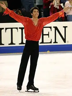 At the 2000 U.S. Championships, Lysacek won the Junior title[20] at the age of fourteen. He placed fifth in the short program and first in the free skate, placing first overall.[21] He was the first male skater since Terry Kubicka to win back-to-back novice and junior men's titles in the United States.[16][22] The win on the junior level was unusual in that Lysacek moved from third to first overall while sitting backstage, because he won through a tiebreak in the 6.0 ordinal system.[23] Following the U.S. Championships, he was assigned to the 2000 Gardena Spring Trophy in Urtijëi, Italy, where he won the silver medal at the junior level.[24]