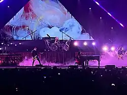Evanescence joined Muse on their North American tour from February to April 2023.[256] In May, the band performed at the inaugural Sick New World festival in Las Vegas,[257] and Welcome to Rockville festival in Florida.[258] The following month, they traveled to Europe to play the German festivals Rock am Ring and Rock im Park,[259] Download Festival's 20th anniversary in England, where they played to what was deemed the biggest crowd ever for the second stage and their performance was listed by Metal Hammer as one of the 20 greatest Download festival sets ever,[260][261][262] and a solo show in Poland and France.[263] They then performed at Japan's Summer Sonic Festival on August 19–20,[264] and toured Australia from August 24 to September 2.[265] The band returned to the US to play Blue Ridge Rock Festival on September 7,[266][263] and a show in Atlantic City, New Jersey on September 8.[263] From October 7 to October 28, they embarked on a Latin American tour across Mexico, Chile, Argentina, and Brazil.[267][268] The band played their biggest solo show ever at the Allianz Parque stadium in São Paulo, Brazil.[269] In November, Evanescence was awarded Rock Sound's 2023 Hall of Fame award.[270]