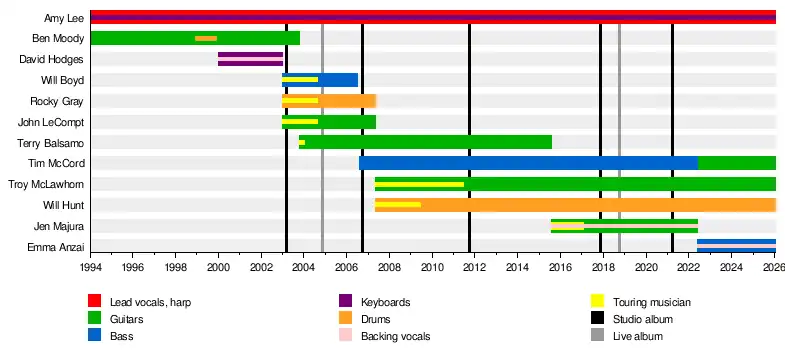 - Amy Lee – lead vocals, piano, keyboards, harp (1994–present)