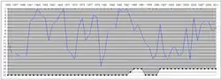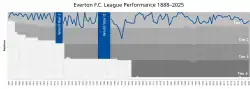 Everton is the club with the second-longest continuous presence in English top-flight football, and ranks third in the all-time points rankings.[1][2] As of August 2025, the club have competed in the top division for a record 123 seasons, having missed only four top-flight seasons (1930–31, 1951–52, 1952–53, and 1953–54).[3]