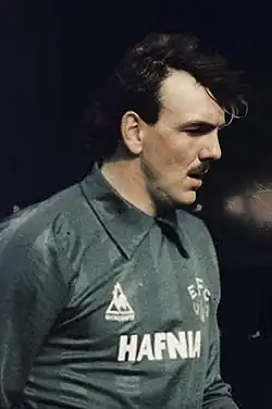Howard Kendall took over as manager and guided Everton to their most successful era. Domestically, Everton won the FA Cup in 1984 and two League Championships in 1984–85 and 1986–87. In Europe, the club won their first, and so far only, European trophy by securing the European Cup Winners' Cup in 1985.[28] The European success came after first beating University College Dublin, Inter Bratislava and Fortuna Sittard. Then, Everton defeated German giants Bayern Munich 3–1 in the semi-finals, despite trailing at half time (in a match voted the greatest in Goodison Park history), and recorded the same scoreline over Austrian club Rapid Vienna in the final.[29] Having won both the League and Cup Winners' Cup in 1985, Everton came very close to winning a treble, but lost to Manchester United in the FA Cup final.[28] The following season, 1985–86, Everton was the runner-up to Liverpool in both the League and the FA Cup, but did recapture the League Championship in 1986–87.