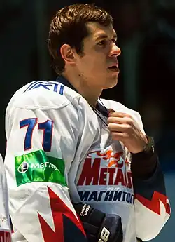 Evgeni Vladimirovich Malkin (Russian: Евге́ний Влади́мирович Ма́лкин, IPA: [jɪvˈɡʲenʲɪj ˈmalkʲɪn];[2][3] born 31 July 1986) is a Russian professional ice hockey player who is a centre and alternate captain for the Pittsburgh Penguins of the National Hockey League (NHL). Nicknamed "Geno", Malkin began his career with his hometown club Metallurg Magnitogorsk, playing for their junior and senior teams. He was then selected second overall in the 2004 NHL entry draft by the Pittsburgh Penguins, though an international transfer dispute delayed the start of his NHL career until 2006.