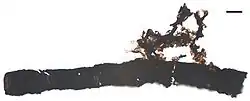 Trilete spores similar to those of vascular plants appear soon afterwards, in Upper Ordovician rocks about 455 million years ago.[20][21] Depending exactly when the tetrad splits, each of the four spores may bear a "trilete mark", a Y-shape, reflecting the points at which each cell squashed up against its neighbours.[22] However, this requires that the spore walls be sturdy and resistant at an early stage. This resistance is closely associated with having a desiccation-resistant outer wall—a trait only of use when spores must survive out of water. Indeed, even those embryophytes that have returned to the water lack a resistant wall, thus don't bear trilete marks.[22] A close examination of algal spores shows that none have trilete spores, either because their walls are not resistant enough, or, in those rare cases where they are, because the spores disperse before they are compressed enough to develop the mark or do not fit into a tetrahedral tetrad.[22]