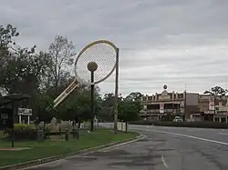 A 13.8-metre (45 ft) long replica of a tennis racquet used by Goolagong has been built in Evonne Goolagong Park in Goolagong's hometown of Barellan. Goolagong unveiled the exact scale model of the wooden Dunlop racquet during Barellan's centenary celebrations on 3 October 2009.[28]