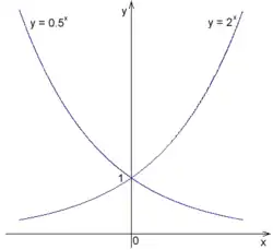 Exponential functions with bases 2 and 1/2