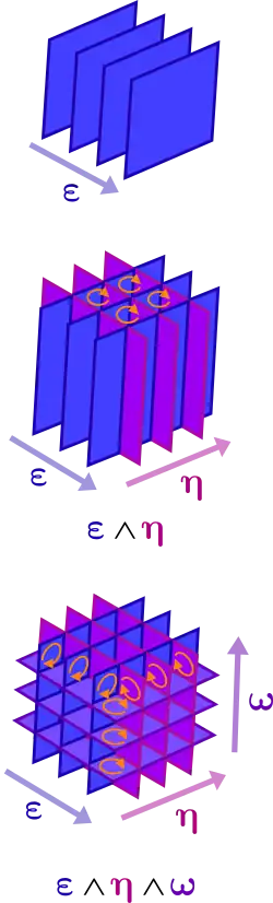 10. ^ Note: The orientations shown here are not correct; the diagram simply gives a sense that an orientation is defined for every k-form.