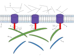 1: Microfilaments 2: Phospholipid Bilayer 3: Integrin 4: Proteoglycan 5: Fibronectin 6: Collagen 7: Elastin
