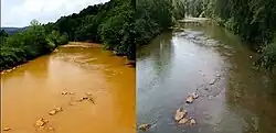 Before (left) and after (right) a cleanup project of the Little Conemaugh River[55]