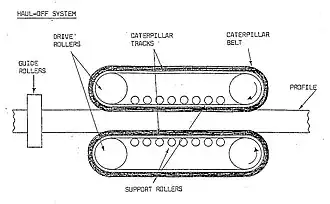 Sectional view of how a caterpillar haul-off provides line tension