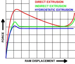 Plot of forces required by various extrusion processes