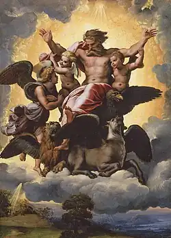 Saint Bonaventure interpreted Ezekiel's statement about the "closed gate" as a prophecy of the Incarnation: the "gate" signifying the Virgin Mary and the "prince" referring to Jesus. This is one of the readings at Vespers on Great Feasts of the Theotokos in the Eastern Orthodox and Byzantine Catholic Churches. This imagery is also found in the traditional Catholic Christmas hymn "Gaudete" and in a saying by Bonaventure, quoted by Alphonsus Maria de' Liguori: "No one can enter Heaven unless by Mary, as though through a door."[21] The imagery provides the basis for the concept that God gave Mary to humanity as the "Gate of Heaven" (thence the dedication of churches and convents to the Porta Coeli), an idea also laid out in the Salve Regina (Hail Holy Queen) prayer.