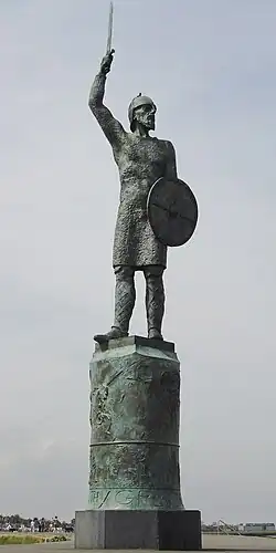 The proud Anglo-Saxon leader Byrhtnoth may have inspired Tolkien to create Fëanor.[6] Statue at Maldon by John Doubleday