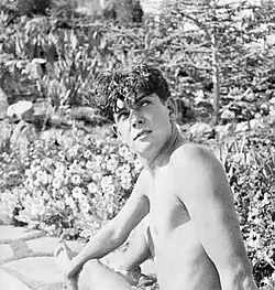 In Hollywood, Murnau reportedly became enamored with the young actor David Rollins, whom he invited to his home.[23] In late 1927, Murnau convinced Rollins to pose nude, with the pool and garden of the Wolf's Lair castle in Hollywood serving as the backdrop.[23] In a later interview Rollins claimed to have been puzzled and surprised by the request, but felt comfortable enough with his body to oblige.[24]