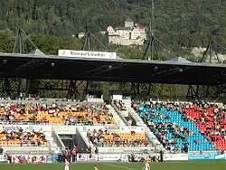Fussball Club Vaduz (En: Football Club Vaduz) is a professional football club from Vaduz, Liechtenstein that plays in the Challenge League, the second tier of Swiss football. The club plays at the national Rheinpark Stadion, which has a capacity of 5,873 when all are seated but has additional standing places in the North and South ends of the ground, giving a total stadium capacity of 7,838.[1]