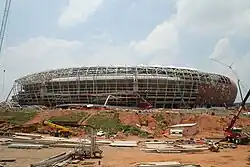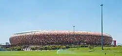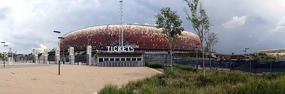 It is located next to the South African Football Association headquarters (SAFA House) where both the FIFA offices and the Local Organising Committee for the 2010 FIFA World Cup are housed.[6] Designed as the main association football stadium for the 2010 World Cup, the FNB Stadium became the largest stadium in Africa with a capacity of 94,736. However, its maximum capacity during the 2010 FIFA World Cup was 84,490 due to reserved seating for the press and VIPs. The stadium is also known by its nickname "The Calabash" due to its resemblance to the African pot[7] or gourd.