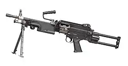 The FN Minimi (short for French: mini-mitrailleuse; "mini machine gun") is a Belgian 5.56mm or 7.62mm light machine gun, also classified as a squad automatic weapon developed by Ernest Vervier for FN Herstal. Introduced in the late 1970s, it is in service in more than 75 countries.[14] The weapon is manufactured at the FN facility in Herstal and their U.S. subsidiary FN Manufacturing LLC.[15]