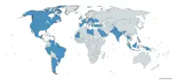 In 2002 and 2003, NATO conducted a series of tests with the intention of standardizing a PDW cartridge as a replacement for the 9×19mm Parabellum cartridge.[18] The tests compared the relative merits of the FN 5.7×28mm cartridge and the HK 4.6×30mm cartridge, which was created by German small arms manufacturer Heckler & Koch as a competitor to the 5.7×28mm.[18] The results of the NATO tests were analyzed by a group formed of experts from Canada, France, the United Kingdom, and the United States, and the group's conclusion was that the 5.7×28mm was "undoubtedly" the more efficient cartridge;[18] However, the German delegation and others rejected the NATO recommendation that 5.7×28mm be standardized, halting the standardization process indefinitely.[18][16] As a result, both the 4.6×30mm and 5.7×28mm cartridges (and the associated weapons) have been independently adopted by various NATO countries, according to preference; the P90 is currently in service with military and police forces in over 40 countries.[13][16] The 5.7x28mm was finally standardized by NATO in February 2021.[19][20]