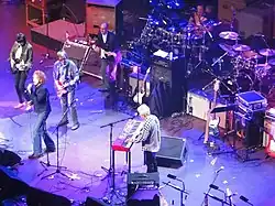 The Small Faces/Faces were inducted into the Rock and Roll Hall of Fame in 2012.[26][27] On 23 March, the Faces announced that they would reunite with Rod Stewart to play at the induction ceremony for the first time in 19 years.[28] However, on the eve of the ceremony, Stewart bowed out owing to a bout of influenza and Hucknall was asked to sing in his place.[29] In June 2013, speaking in an interview on YouTube, Kenney Jones confirmed the band's intention to reunite with Stewart for a tour in 2014.[30] However, Ian McLagan died on 3 December 2014, putting this reunion in doubt.