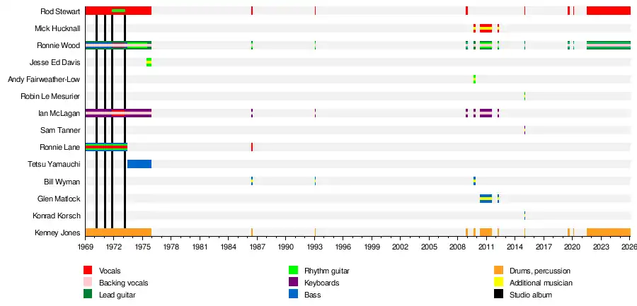 - Rod Stewart – lead vocals, harmonica, occasional banjo and guitar (1969–1975, 1986, 1993, 2015, 2019, 2020, 2021–present)