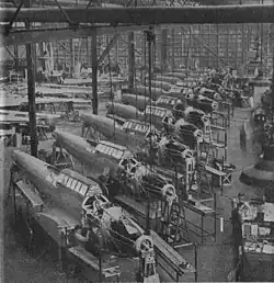 In 1936, further orders were placed for Fairey to build additional Battles to Specification P.14/36.[7] In June 1937, the first production Battle, K7558, conducted its maiden flight.[2] K7558 was later used to perform a series of official handling and performance trials in advance to the wider introduction of the type to operational service. During these trials, it demonstrated the Battle's ability to conduct missions of a 1,000-mile range while under a full bomb load.[2] The first 136 Fairey-built Battles were the first aircraft to be powered by the Merlin I engine.[2] By the end of 1937, 85 Battles had been completed and a number of RAF squadrons had been re-equipped with the type, or were otherwise in the process of re-equipping.[7] As the RAF embarked on what became a substantial pre-war expansion programme, the Battle was promptly recognised as being a priority production target. At one point a total of 2,419 aircraft were on order for the service.[8][9] In June 1937, the first aircraft was completed at Hayes, but all subsequent aircraft were manufactured at Fairey's newly completed factory at Heaton Chapel, Stockport, Cheshire.[5]
