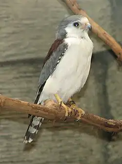 Falconinae, in its traditional classification, contains the falcons, falconets, and pygmy falcons.[11] Depending on the authority, Falconinae may also include the caracaras and/or the laughing falcon.[10][12]