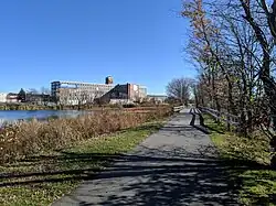 With the demise of the textile industry, many of the city's mills were occupied by smaller companies, some in the garment industry, traditionally based in the New York City area but attracted to New England by the lure of cheap factory space and an eager workforce in need of jobs.[17] The garment industry survived in the city well into the 1990s, by which point it had fallen victim to globalization and foreign competition.[18]