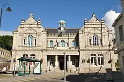 There are two tiers of local government covering Falmouth, at parish (town) and unitary authority level: Falmouth Town Council and Cornwall Council. The town council has its offices at the Old Post Office on The Moor, and meets at the adjoining Municipal Building (built 1896), which also houses the town's library and an art gallery.[31][32]