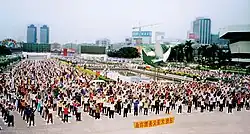 Falun Gong emerged from the qigong movement in China in 1992, combining meditation, qigong exercises, and moral teachings rooted in Buddhist and Taoist traditions.[7][8] While supported by some government agencies,[9][10] Falun Gong's rapid growth and independence from state control led several top officials to perceive it as a threat, resulting in periodic acts of harassment in the late 1990s.[11][12][13] On 25 April 1999, over 10,000 Falun Gong practitioners gathered peacefully outside the central government compound in Beijing, seeking official recognition of the right to practice their faith without interference.[14][15]