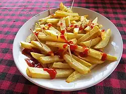 Fish and chip shops are a form of fast food popular in the United Kingdom, Australia and New Zealand. Fish is battered and then deep-fried, and served with deep-fried potato strips.[34]
