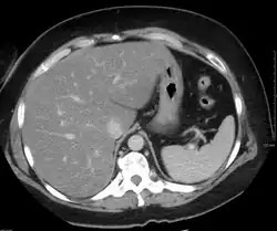 Fatty liver disease (FLD), also known as hepatic steatosis and steatotic liver disease (SLD), is a condition where excess fat builds up in the liver.[1] Often there are no or few symptoms.[1][2] Occasionally there may be tiredness or pain in the upper right side of the abdomen.[1] Complications may include cirrhosis, liver cancer, and esophageal varices.[1][3]