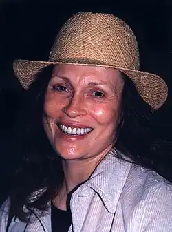 In 2011, a photo of Dunaway taken by Jerry Schatzberg in 1970 was chosen as the 64th annual Cannes Film Festival poster backdrop. The festival organizers described it as a "Model of sophistication and timeless elegance, it is an embodiment of the cinematic dream that the Festival de Cannes seeks to maintain".[33] During the festival, Dunaway and Schatzberg appeared at a special screening of Puzzle of a Downfall Child, earning a standing ovation upon their entrance. In 2013, Dunaway was the first recipient of the Leopard Club Award and made a rare personal appearance at the Locarno International Film Festival to accept it.[100] In 2014, Dunaway was recognized as the guest of honor by the Lumière Film Festival. Organizers praised the "immense contribution she has made to the emergence of the independent American films of the '60s and '70s, and the contribution is of the highest caliber".[101] Her attendance at the festival was described as an "exceptional event". Dunaway received a standing ovation by a crowd of 5,000, and declared in an emotional speech following the tribute she received, "My fans and my friends have supported me in this search for all these years, and I thank you from all of my heart, and without you, I would not be the same Faye Dunaway."[102] In 2014, Dunaway had to pull out of a French drama called Macadam Stories, in which she was going to play the lead, due to health issues, and was replaced by Isabelle Huppert.[103] The following year, it was announced that Dunaway was writing a book about her experiences making Mommie Dearest, but the project never materialized.[104]