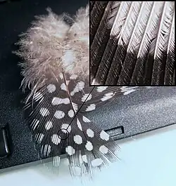 - ^ a b Foth, C (2011). "On the identification of feather structures in stem-line representatives of birds: evidence from fossils and actuopalaeontology". Paläontologische Zeitschrift. 86: 91–102. doi:10.1007/s12542-011-0111-3. S2CID 86362907.