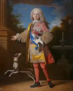 Born at the Royal Alcázar of Madrid, Ferdinand was the last of the four sons that Philip V had in his first marriage to Maria Luisa of Savoy. The young infante endured a sad and lonely childhood. When he was just five months old, his mother died from tuberculosis, and seven months later, his father remarried the ambitious and domineering Elisabeth Farnese, who had no affection except for her own children, and looked upon Ferdinand and her other stepsons as an obstacle to their fortunes. The hypochondria of his father left Elisabeth mistress of the palace.[2]