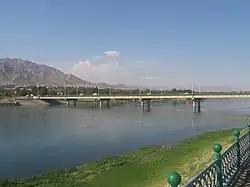 The Syr Darya river bridge at Khujand, Tajikistan, in the far west of the Fergana Valley.