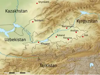 2. ^ grida.no Archived 28 September 2011 at the Wayback Machine: topography and hydrography of the Ferghana valley.