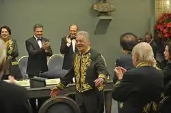 As he continued his academic career abroad in Chile and France after the tightening of the Brazilian military dictatorship, Cardoso published several books and papers on state bureaucracy, industrial elites and, particularly, dependency theory. His work on dependency would be his most acclaimed contribution to sociology and development studies, especially in the United States.[19] After presiding the International Sociological Association from 1982 to 1986 Cardoso was selected as a Fulbright Program 40th anniversary distinguished fellow and in that capacity was a visiting scholar and lectured at Columbia University on democracy in Brazil.[20] Cardoso currently gives speeches and classes abroad.[21] In June 2013 he was elected as a member of Academia Brasileira de Letras. He said his election was due to recognition for his academic achievements, rather than his political career.[22][23]