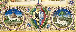 In 1452 Borso d'Este was created duke of Modena and Reggio by Emperor Frederick III and in 1471 duke of Ferrara by Pope Paul II.[11] Lionello and, especially, Ercole I were among the most important patrons of the arts in late 15th- and early 16th-century Italy. During this time, Ferrara grew into an international cultural centre, renowned for its architecture, music, literature and visual arts.[12]