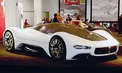 The Maserati Birdcage 75th is a concept car created by automobile manufacturer Maserati and designed by Pininfarina, as a celebration of Pininfarina's 75th anniversary, and was introduced at the 2005 Geneva Auto Show. It is an evolution of the MC12 and draws inspiration from the Maserati Tipo Birdcages of the 1960s.[36] There were rumors that Maserati was going to produce the car as the MC13, for which Maserati confirmed to have plans, but they were cancelled due to problems with Pininfarina giving Maserati total control over the design of the car.