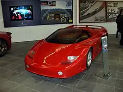 The FZ93 (Formula Zagato '93) was designed by Ercole Spada as a follow-up to Zagato's series of Ferrari specials.[47] In 1994 the car was reworked and repainted all-red; it was also renamed as ES1 in honour of its designer.[48]