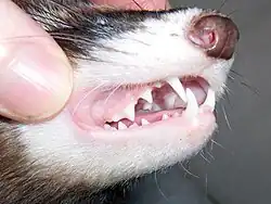 • Twelve small incisor teeth (only 2–3 mm [33218 in] long) located between the canines in the front of the mouth. These are used for grooming.