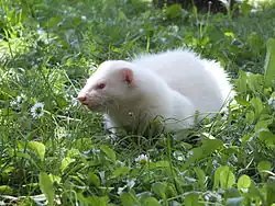 31. ^ Piazza, S; Abitbol, M; Gnirs, K; Huynh, M; Cauzinille, L (1 May 2014). "Prevalence of deafness and association with coat variations in client-owned ferrets". Journal of the American Veterinary Medical Association. 244 (9): 1047–52. doi:10.2460/javma.244.9.1047. PMID 24739114.