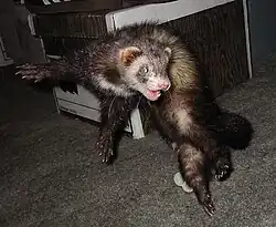 Typical ferret coloration, known as a sable or polecat-colored ferret