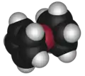 From room temperature down to 164 K (−164 °F; −109 °C), X-ray crystallography yields the monoclinic space group; the cyclopentadienide rings are a staggered conformation, resulting in a centrosymmetric molecule, with symmetry group D5d.[19] However, below 110 K (−262 °F; −163 °C), ferrocene crystallizes in an orthorhombic crystal lattice in which the Cp rings are ordered and eclipsed, so that the molecule has symmetry group D5h.[26] In the gas phase, electron diffraction[27] and computational studies[28] show that the Cp rings are eclipsed. While ferrocene has no permanent dipole moment at room temperature, between 172.8 and 163.5 K (−148.6 and −165.4 °F; −100.3 and −109.6 °C) the molecule exhibits an "incommensurate modulation", breaking the D5 symmetry and acquiring an electric dipole.[29]