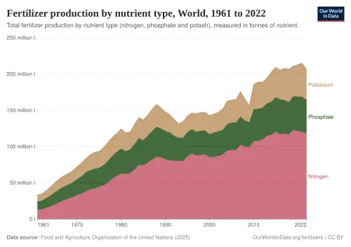 - ^ FAO (2012). Current world fertilizer trends and outlook to 2016 (PDF). Rome, Italy: Food and Agriculture Organization of the United Nations. p. 13. Archived (PDF) from the original on 18 May 2017. Retrieved 30 December 2025.