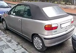 A cabriolet (convertible) version was also available, built by Bertone (rather than at the main Fiat factory). The horizontal rear light clusters were totally different than the vertical ones of the Punto hatchback. It was available in SX trim, with 1.2 60 PS (44 kW) FIRE engine, and ELX trim, initially powered by the 90 PS (66 kW) 1.6 Mpi unit, which was replaced in 1995 by the 86 PS (63 kW) 1.2 litre 16v FIRE unit.