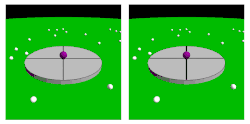 Figure 5 shows another example comparing the observations of an inertial observer with those of an observer on a rotating carousel.[45] The carousel rotates at a constant angular velocity represented by the vector Ω with magnitude ω, pointing upward according to the right-hand rule. A rider on the carousel walks radially across it at a constant speed, in what appears to the walker to be the straight line path inclined at 45° in Figure 5. To the stationary observer, however, the walker travels a spiral path. The points identified on both paths in Figure 5 correspond to the same times spaced at equal time intervals. We ask how two observers, one on the carousel and one in an inertial frame, formulate what they see using Newton's laws.